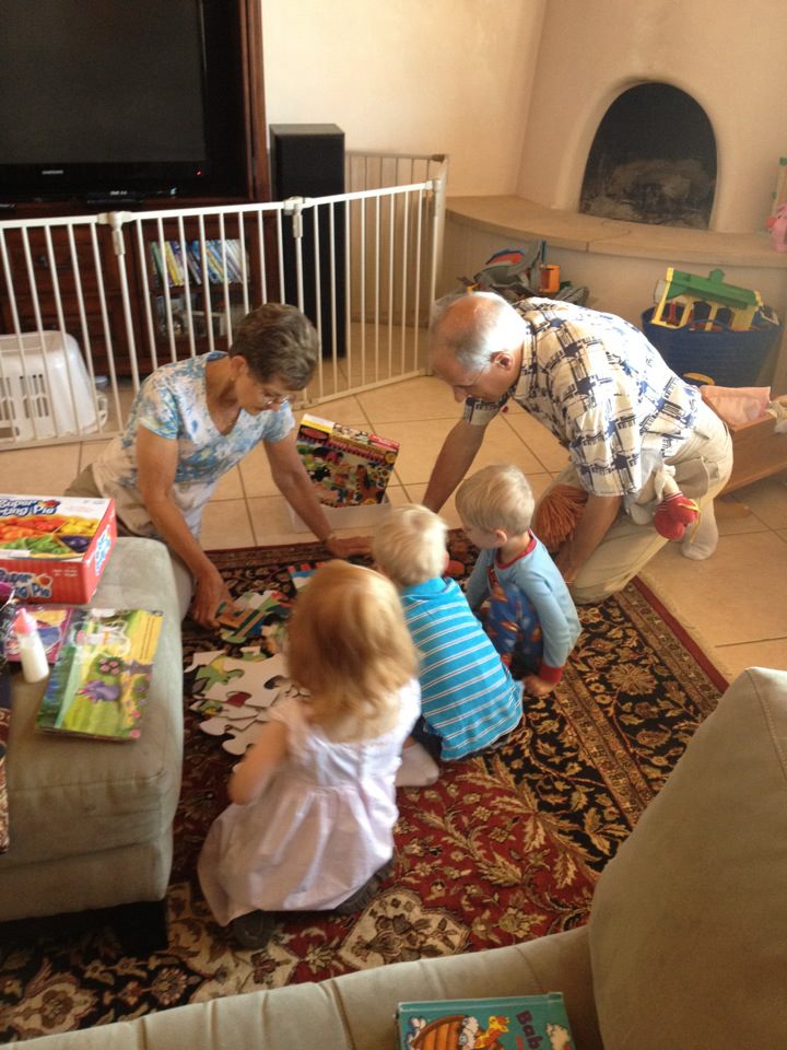 We love to put our floor puzzle together and rip it apart as soon as it's completed. Here are some pictures of us helping Uncle Paul and Aunt Lucille put it together.